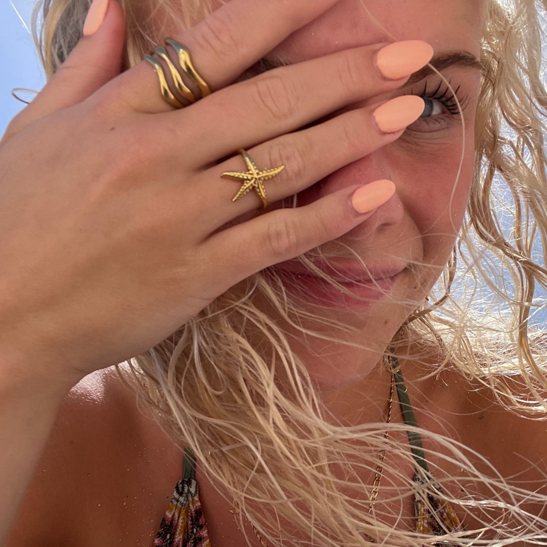 Sirena fingerringens karismatiske udtryk tilføjer et strejf af ferie og varme sommer-vibes, der løfter din stil med personlig cool charme.